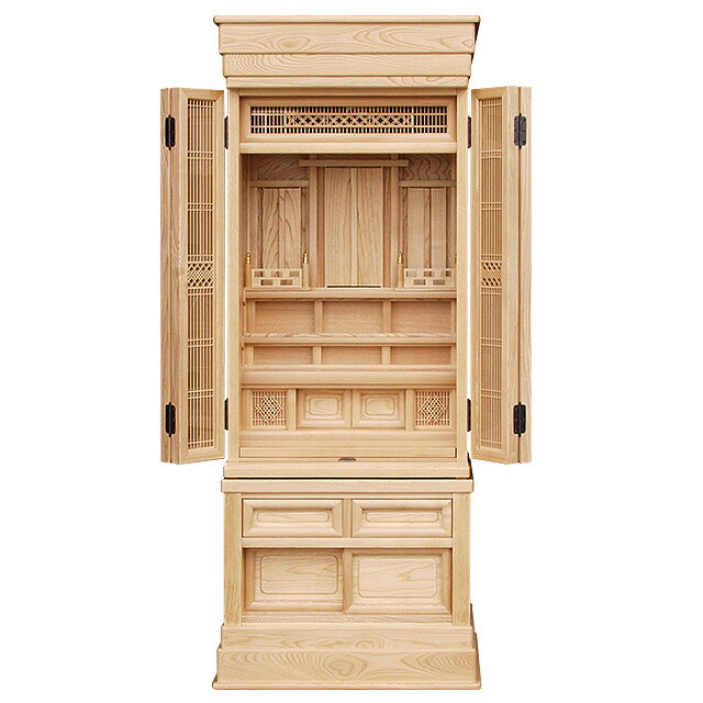 お祀りに便利なスライド式の棚板と、収納に便利な引き出しが付いています。