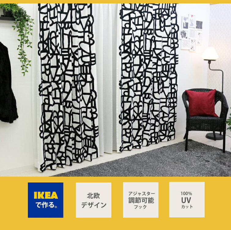 北欧カーテン 【スクッグブレッカ】【IKEA】白黒 モノトーン 綿100% おしゃれ デザイナーズ 男性 リビング カフェ オシャレ イケア オーダーメイド オーダーカーテン 人気